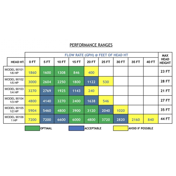 - Includes: 1 1/2” and 2” Barbed Fitting: 1/6 HP, 1/5 HP & 1/4 HP or 2” Barbed Fitting: 1/3 HP, 1/2 HP & 1 HP