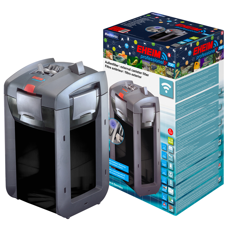 The EHEIM professionel 5e is our best external filter to date, offering everything an aquarium enthusiast could wish for. Each function can be individually programmed and controlled wirelessly. The electronic system monitors all functions and keeps the flow constant as well as delivering strong performance due to the large filter volume. The clever design and the regulation of the electronic flow extend the maintenance intervals for the biological filter material considerably and, in addition, there is the acclaimed smooth EHEIM performance. The skilled workmanship, the high quality materials and the renowned "Made in Germany" reliability, combined with the 3 year warranty, leave nothing to be desired.