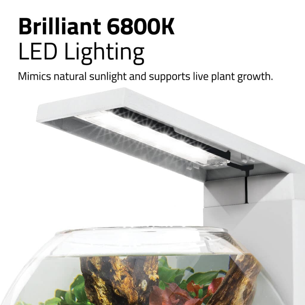 - Brilliant 6800K LED lighting mimics natural sunlight and supports live plant growth