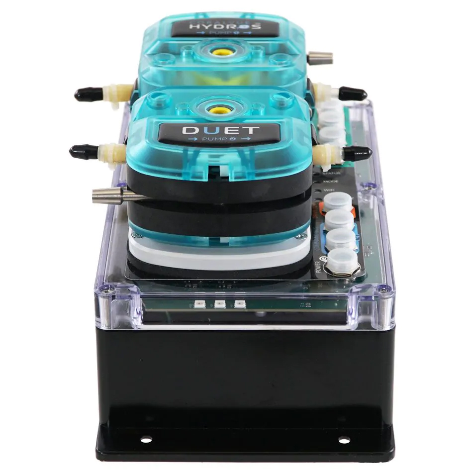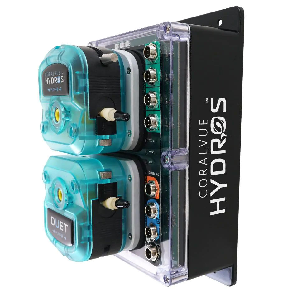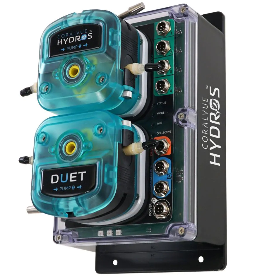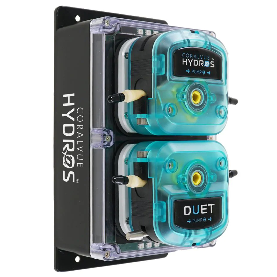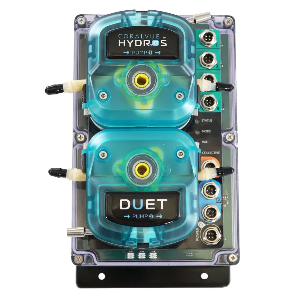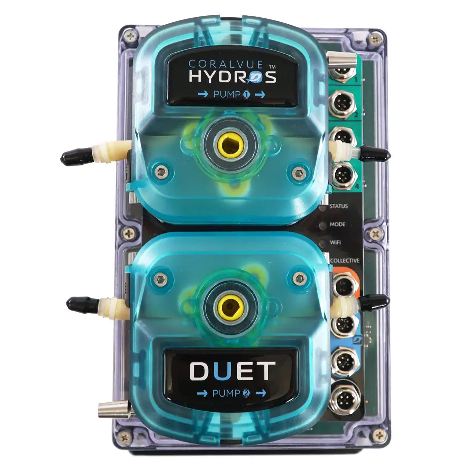 The HYDROS Duet is a professional-grade aquarium controller and monitoring system built around two super-duty liquid dosing pumps, engineered for high-volume liquid management in both freshwater and saltwater aquariums. Designed for demanding applications like automatic water changes, calcium reactor effluent control, kalkwasser additions, liquid food dosing, and sulfur reactor feeding, the Duet delivers the precision and reliability that hobbyists and professionals depend on. It works seamlessly as a standalone controller or as part of a broader HYDROS ecosystem, and when paired with a HYDROS XP8, it unlocks full outlet control over lights, pumps, feeders, and other accessories. Real-time alerts and push notifications keep you connected to your aquarium around the clock.