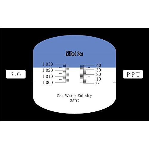 Therefore, Red Sea’s Seawater Refractometer calibrated at 25°C/77 0F directly reads the absolute salinity of seawater with no need for temperature compensation factor)