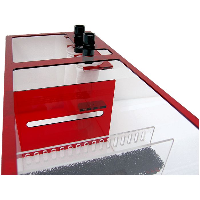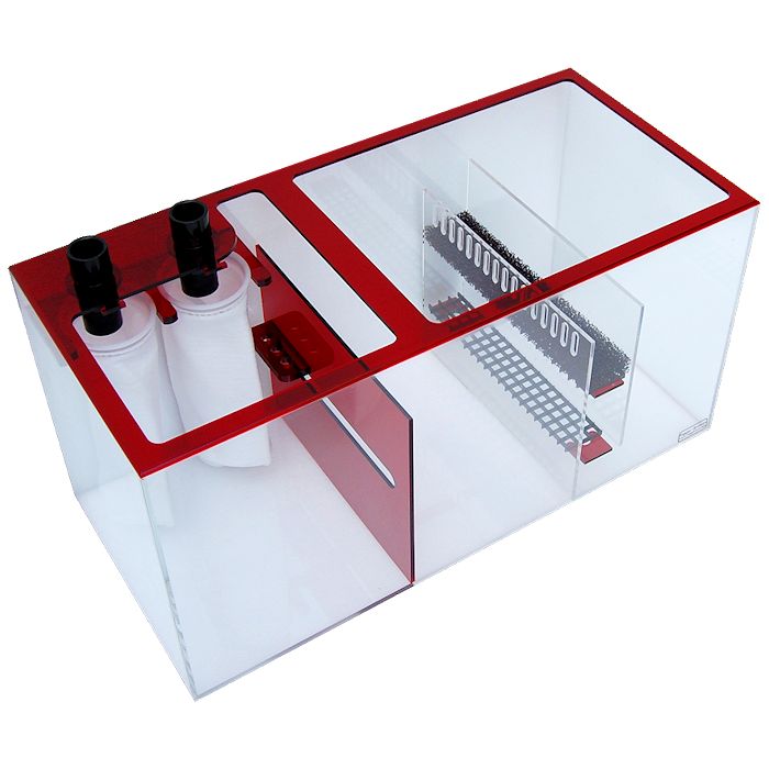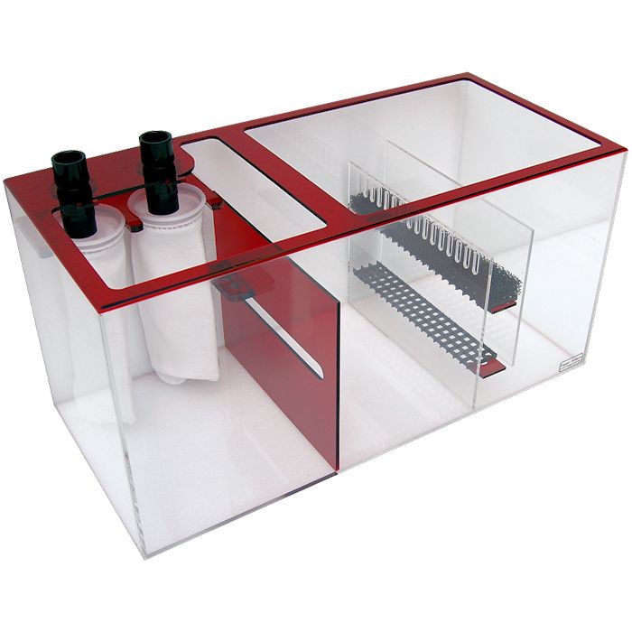 RUBY sumps come with dual platforms in the space before the return section. The top platform comes with a foam block filter and the bottom one is open to use for several different filtration methods (bag of carbon, bio balls, rubble rock, etc.).